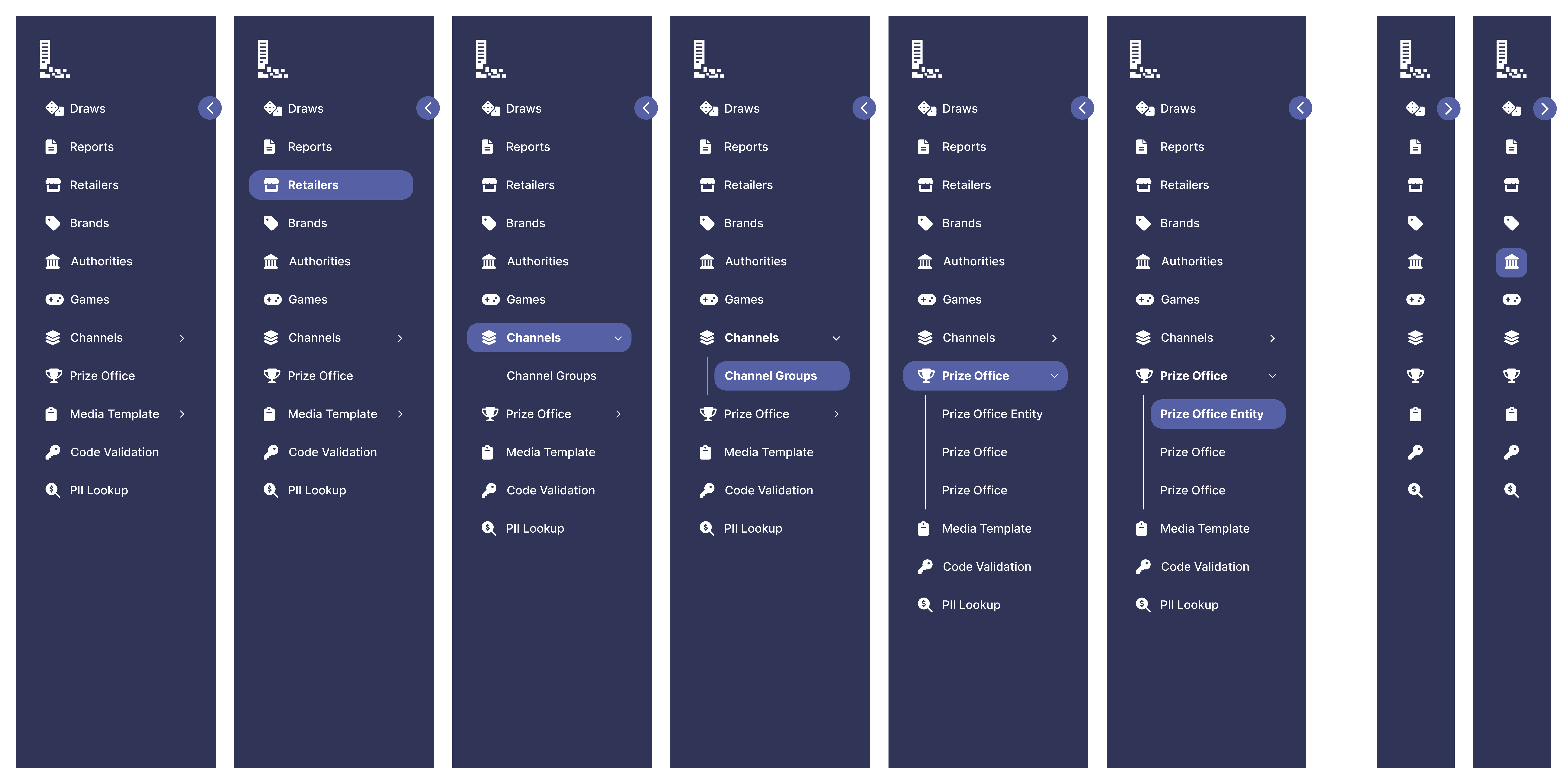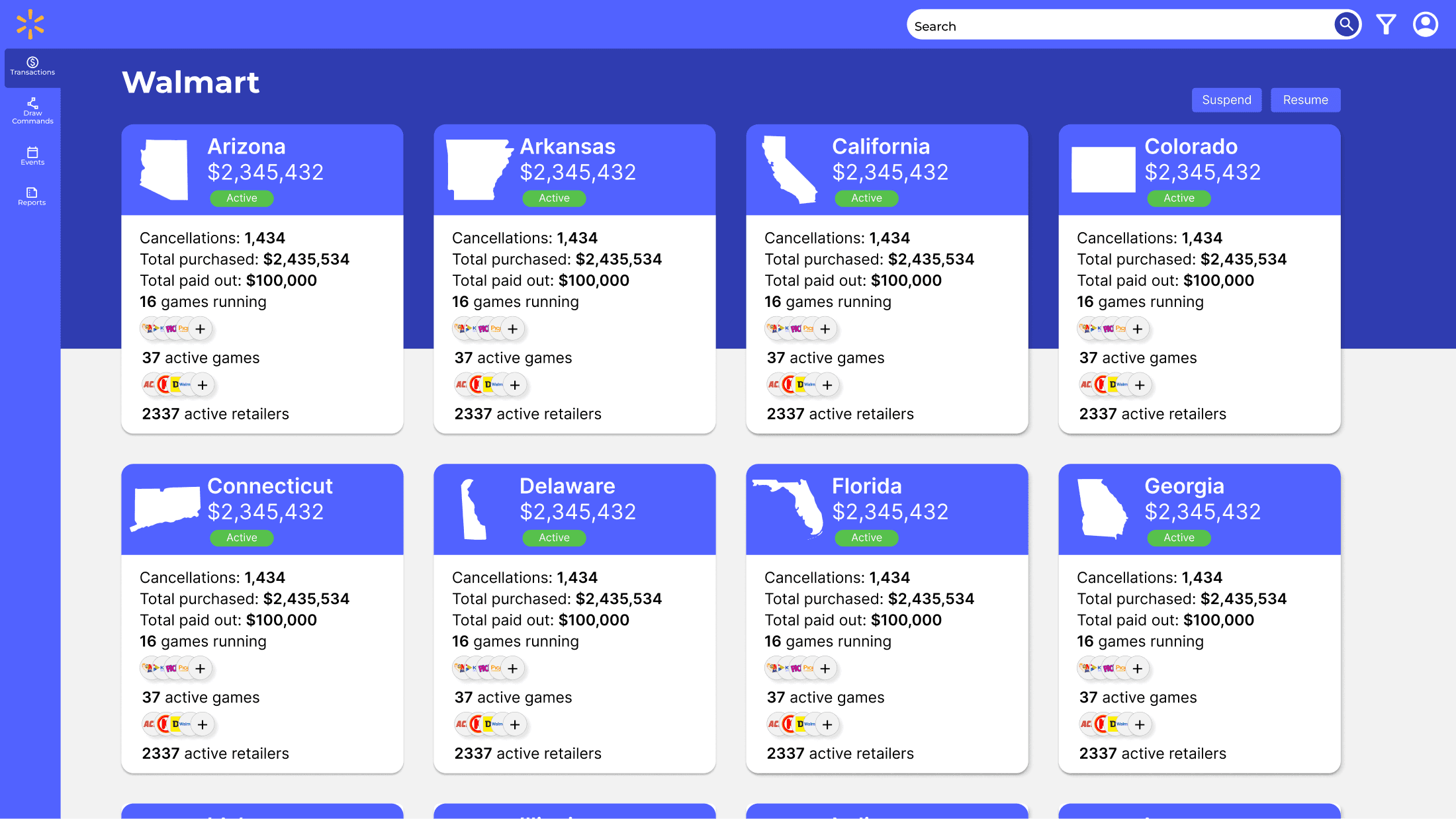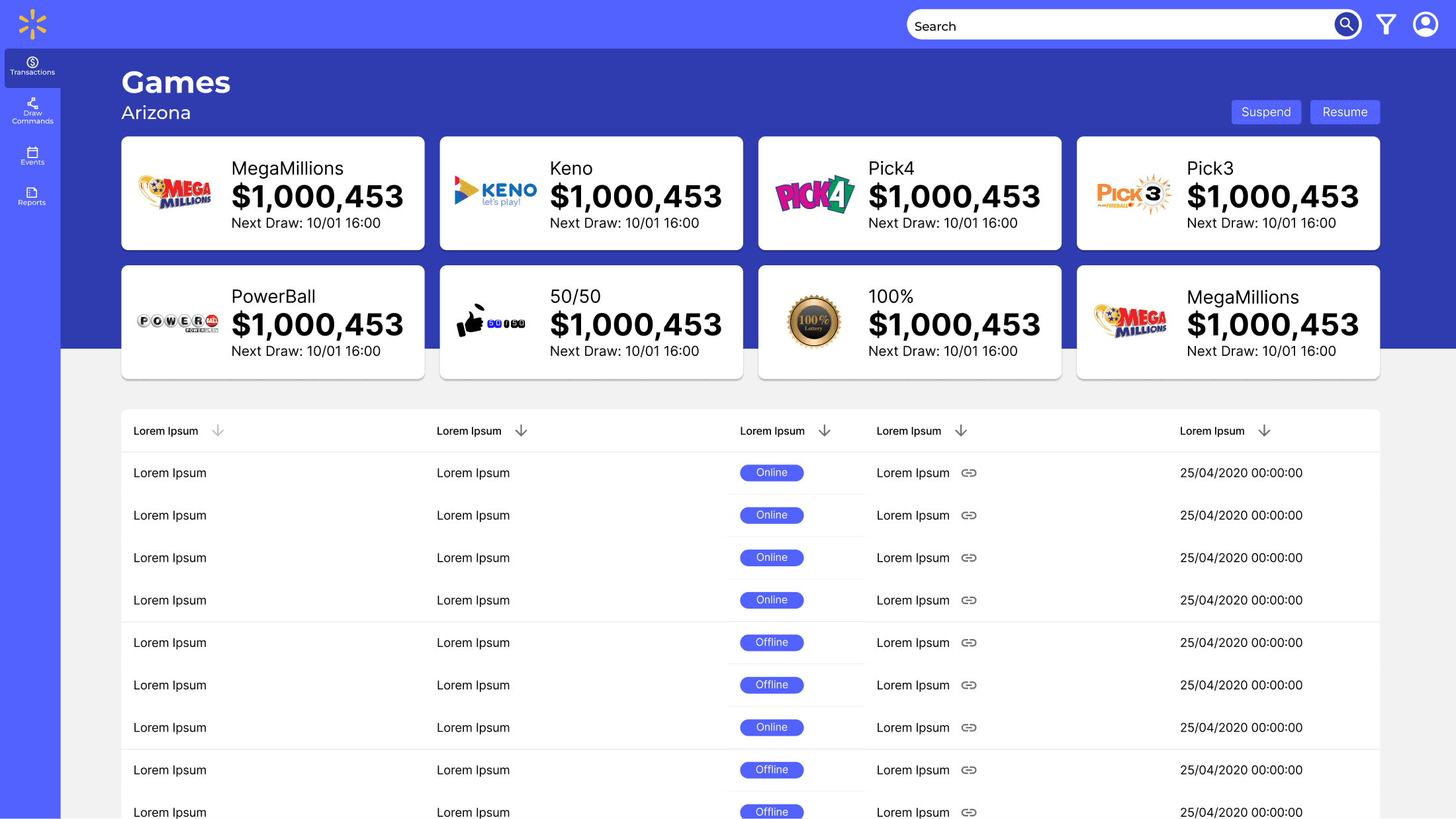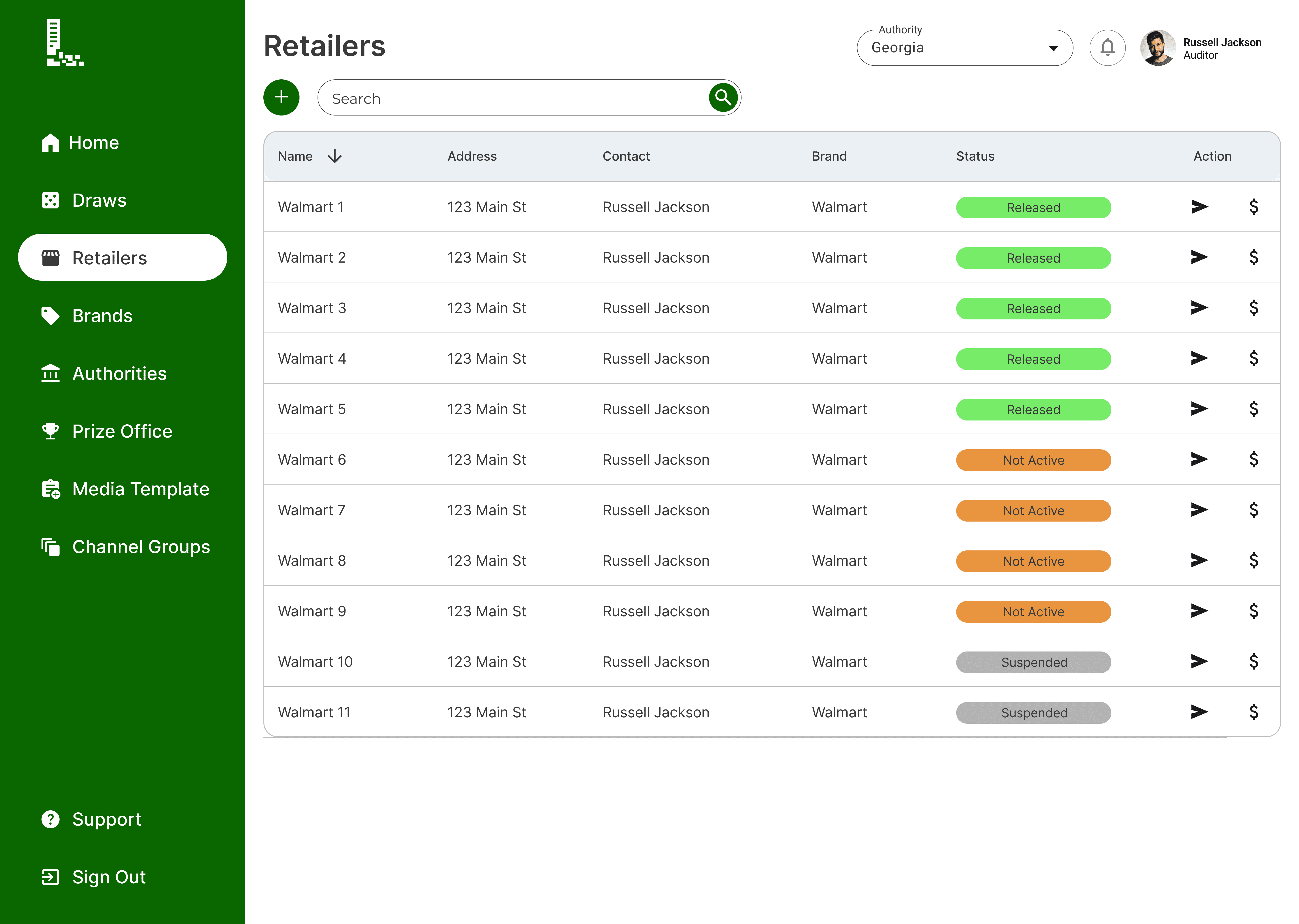 We took our findings and grouped them into two categories - Real Time Operations and Enterprise Operations and set out to make two separate products. The Real Time platform showed live sales, game updates, draw information and would host the necessary reports. The Enterprise platform would focus more on the back-end operations like setting up and managing Authorities, Retailers, Brands, etc.