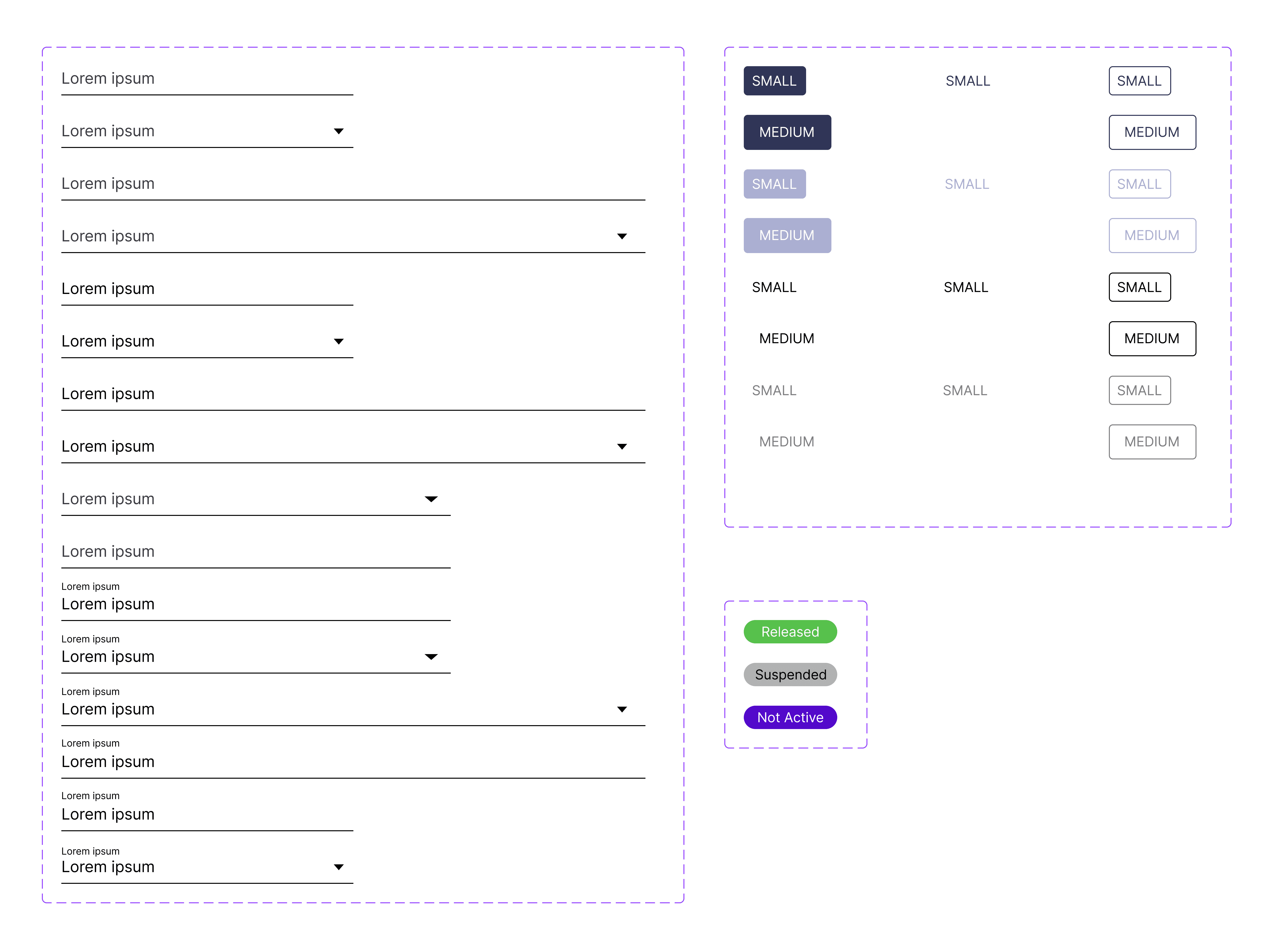 high-fidelity iterations to quickly explore ideas and establish direction. At that point, the company had no brand guidelines beyond a logo and no formal design system. The development team had chosen MudBlazer as their framework, which provided a developer-oriented component library but little that was usable for design. To bridge this gap, I created styling guidelines and a custom component library in Figma, rebuilding the necessary MudBlazer components from scratch to establish a scalable design system.